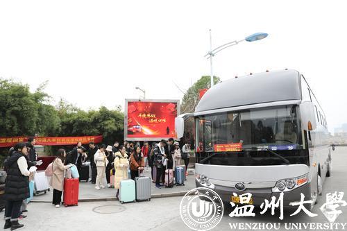 温都讯 随着温州各大高校陆续放寒假,大学生返乡迎来高峰。春运首日,记者获悉,从1月10日至12日,亚洲无码 专门安排12辆大巴车和2辆中巴车,按乘车需求匹配形成28条不同发车间隔的班次,免费为900多名师生提供“按需出行”的送站服务。市公安局交管局四大队民警上门服务,为送站专车提供安全监测,确保师生平安踏上回家路。