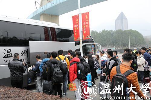 10日12时许,不少学生提着大包小包、拉着行李箱,在温大茶山南校区东大门口坐上“爱心大巴”。就读大一的陈同学说:“我准备坐动车回宁波,从学校到动车站还有点路程,这几天公交车特别拥挤,现在能坐上学校的‘爱心大巴’,真的轻松多了!”大三的李同学也表示,最近大学生微信群里讨论最热烈的话题就是“回家”,大家本来都有点担心,带着很多行李去市区的汽车、动车站不方便,前几天得知学校有车送站,都很开心,许多同学都通过微信预约报名了。