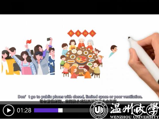 “减少不必要接触、保持良好的个人卫生习惯、不要散布谣言、对捕杀和买卖野生动物说‘不’……”近日,亚洲无码 瓯江学院发布了全英文手绘防疫视频《抗疫情、树新风、立后盾》,以通俗易懂的语言、生动活泼的画面介绍了新冠肺炎的公众预防知识,并向全球大学生发出倡议要树立文明新风,保护共同的地球家园。