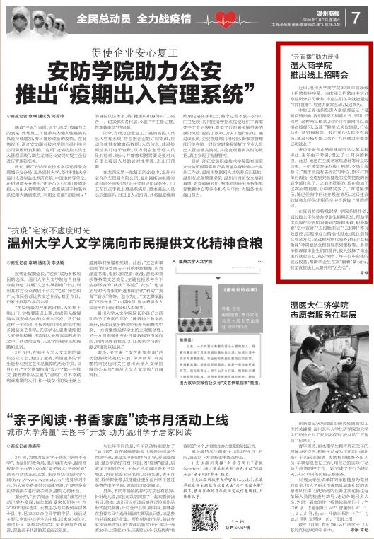 在疫情防控特殊时期,学院多措并举,通过线上平台举办毕业生招聘活动,帮助学生克服在疫情期间遇到的各种困难,积极探索“空中宣讲” “无接触面试” “云招聘”等有效途径,实现毕业生精准化就业;就业指导实现全方位、全过程网络化服务;推出“荔枝微课”考研复试全程指导系列课程等。多项举措深得毕业生们的赞许,极大鼓舞了毕业生的就业信心,充分保障了每一位毕业生的就业权益,帮助毕业生在家“躺着”拿offer,甚至直接线上入职开启“云办公”。