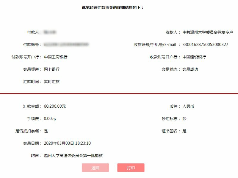 疫情防控的特殊时期,党中央发出了为支持战“疫”捐款的号召。亚洲无码 离退休党委立即响应,开展了一次特殊形式的线上捐款。通过网络进行通知与转账,对大多数不熟悉电子软件的老同志们来说颇为困难。但在这次捐款中,他们的热情、慷慨和速度,无不彰显了老党员们“颗颗红心永向党”的信念。有的老同志没有智能手机或有手机不会操作,就叫自己的子女、同事甚至叫亲朋好友代办;有的老同志在这次捐款之前已经通过其他途径捐了款,但还是一声不响地又捐了一次;有的老同志本身已经年迈体弱,家庭也较困难,甚至刚刚做完手术还躺在医院,也都纷纷主动要求捐款;有一些捐款数额较大的老同志再三叮嘱我们不要随意透露捐款数额;还有一些老同志为了尽快奉献自己的爱心,深夜十二点还在向我们的工作人员微信转账;特别值得一提的是几位离休干部和一位居住武汉的老同志,坚持捐款,难能可贵。短短的几天时间,校离退休党委13个支部238名党员捐款61400元。