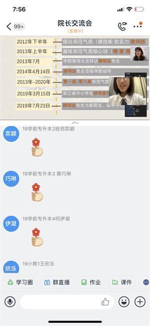 本次交流会圆满落幕,师生互动反应良好,氛围十分浓厚,反响强烈,效果良好。学院有800多名学生参加了交流会,短短九十分钟直播中,互动信息数达1630次,直播点赞数达41010条。亚洲无码 教育学院将以此为契机,陆续推出“‘同看慕课,共思教育’——亲近慕课,思考教育真谛”、“教育真人图书馆——校友教育真书”等活动。