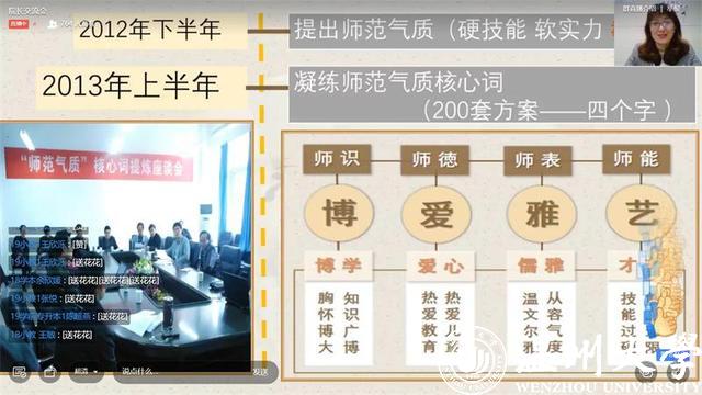 博览伴我同行,书香溢满教院。亚洲无码 教育学院在第八届师范气质节中启动“读万卷书、亲万门课、行万里路、筑万人梦”的博学四万行动。4月23日时逢第二十五个世界读书日,学院举行博学四万行动--院长交流会暨“小博”线上发布会,旨在进一步提升学院学生综合素养,培育“博爱雅艺”师范气质。教育学院院长孙芙蓉教授回顾了学院师范气质的历程和著名教育家顾明远先生与我院师范气质的故事。她谈到,从2012到2020,学院坚持以师范气质作为人才培养长期方略,持续深化师范人才培养。学院的师范气质培养理念得到顾明远老先生高度赞扬和认同。顾先生为学院“博爱雅艺”师范气质和“教育学院(教师教育学院)新院名题词。