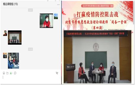 面对疫情,马院成立线上教学服务队,定期推送全国思政课第一课教学案例,全员收看北京市学校思政课教师“同备一堂课”活动网络直播。各教研室举行网络集体备课会,研讨温大新学期“思政第一课”之“抗疫思政专题课”教学方案,形成“抗疫思政小课堂、抗疫思政大讨论、抗疫笔谈千字文”等系列教学活动。