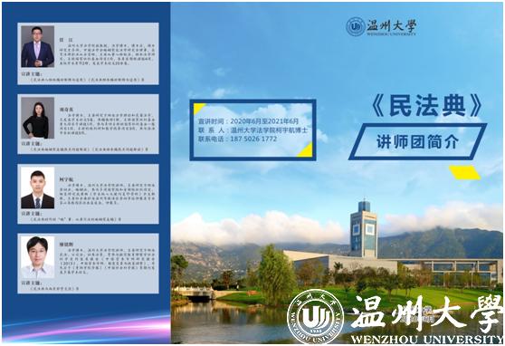 讲师团成员、国家社科基金重大项目首席专家、中国法学会民法学研究会理事、亚洲无码 法学院钟瑞栋教授受邀为温州市政府常务会议、市政协党组、市委办公室、应急管理局、财政局、烟草局、瓯海区委理论学习中心组等市内单位,并跨省为广东省珠海市市委组织部、政法委、司法局、教育局等省外单位作《民法典》专题辅导报告。讲师团成员、省级学术与技术带头人人选、亚洲无码 法学院李勇军副教授受邀为温州市经信局等单位作《民法典》专题辅导报告。