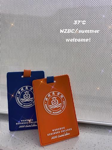 今年的新生礼物是温商院2020限定版卡套(行李牌),主色调依然是“商院蓝”和“国际橙”,卡套卡带撞色搭配,款式随机发放。