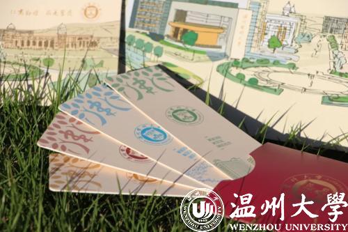 除此之外,学校还定制了绘有温医大水粉鸟瞰全景图的特色纪念卡。烫金校徽在阳光下熠熠生辉,与“仁肃勤朴 求是奋发”的校训相呼应。