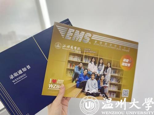 2020年的温州商学院录取通知书套组,走低调奢华路线,染上“商院蓝”,镶上哑光金边。