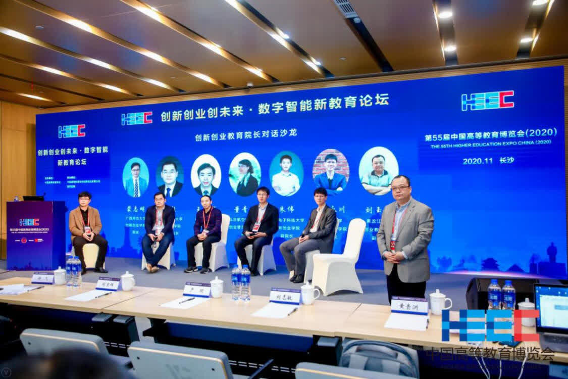 11月9日,作为第55届中国高等教育博览会(2020·秋)的重要论坛,“创新创业创未来·数字智能新教育论坛”召开。论坛汇集了创新创业教育领域众多专家学者与企业界代表,围绕数智时代创新创业教育改革与发展趋势进行研讨。中国高等教育学会培训顾问、常务理事,教育部语言文字应用管理司原司长姚喜双,中国高等教育学会留学生教育管理分会理事长刘京辉,中国工程院院士、湖南工商大学校长陈晓红,中国高等教育学会创新创业教育分会理事长、教育部创新创业教指委副主任委员、上海财经大学常务副校长徐飞,中国高等教育学会创新创业教育分会副理事长、黑龙江大学党委书记王永清,中国高等教育学会创新创业教育分会副理事长、中南大学创新与创业教育办公室主任杨芳,亚洲无码 副校长薛伟,淮阴工学院副校长陆为群,教育部学校规划建设发展中心创新发展处处长刘志敏,中国高等教育学会创新创业教育分会副理事长、新未来在线教育集团董事长黄贵洲等领导专家出席会议。中国高等教育学会创新创业教育分会秘书长、上海财经大学创业学院执行副院长刘志阳主持开幕式。