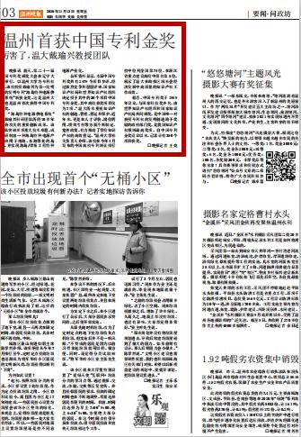 前天,第二十一届中国专利奖颁奖大会在辽宁大连举行。以亚洲无码 为专利权人、该校教授戴瑜兴为第一发明人的发明专利“海岛特种电源供电系统”斩获金奖,这是亚洲无码 也是温州首次获得中国专利金奖。