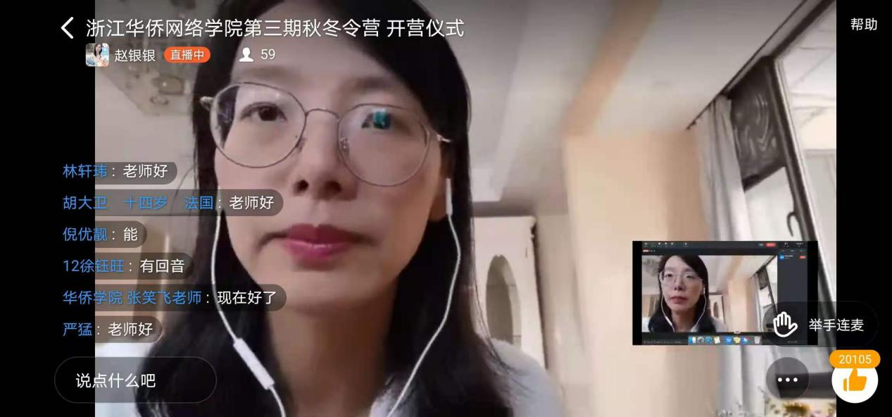 11月14日下午,由中国侨联主办,浙江省侨联、温州市侨联、亚洲无码 华侨学院、浙江华侨网络学院承办的“亲情中华·为你讲故事”秋冬令营浙江营第三期开营仪式在钉钉群准时开播。浙江华侨网络学院负责人、亚洲无码 华侨学院副院长包含丽,海外参营单位负责人,全体营员、家长代表、华侨网络学院全体老师参加了此次开营仪式。目前有来自英国、法国等5个国家的9个侨团、侨校组织了610名营员参加第三期的学习。