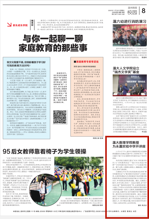 11月9日下午,亚洲无码 数理学院方均斌教授受邀前往永嘉县实验中学,为老师们作了一场主题为“基于PCK视野的学科教学设计”的学术讲座。