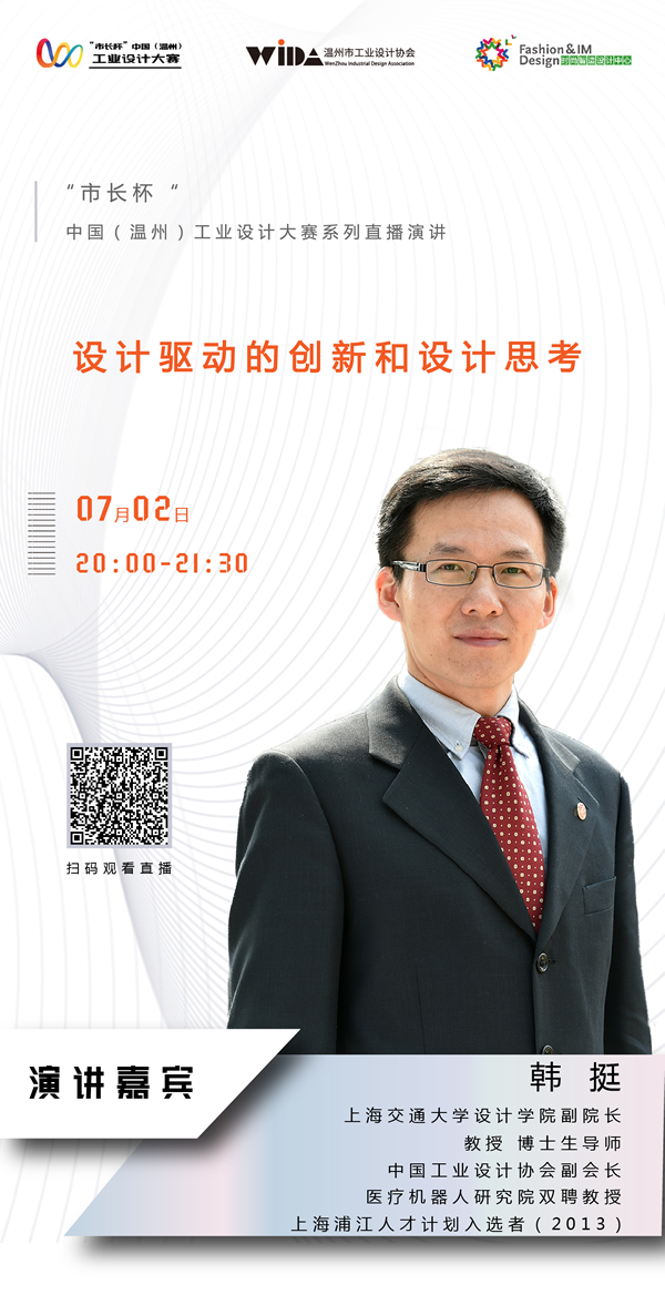 7月2日,韩挺教授为设计师们做《设计驱动的创新和设计思考》为主题的直播演讲。