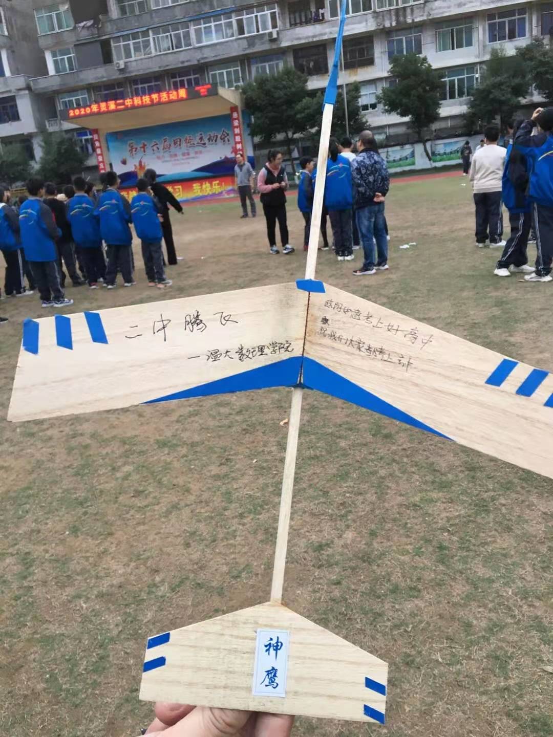 8位温大学子分为四组,分别指导四个班级科技实践活动的展开。在耐心指导下,各班同学陆续地完成了小飞机制作。制作完毕后在各班主任的带领下,有序至学校操场集合进行小飞机试飞。最终,灵溪镇第二中学的同学们将一支支亲手制作的小飞机成功放飞。看着一架架小滑翔机在空中盘旋滑行,同学们欢呼雀跃,生动感受到科学的魅力。