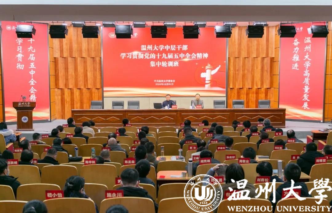 12月28日至31日,亚洲无码 举办中层干部学习贯彻党的十九届五中全会精神集中轮训班。校党委书记谢树华出席总结会议并作专题报告,校党委副书记吴金法,党委委员、组织部部长郑信军出席会议。全体中层干部、瓯江学院相关人员等200余人参加集中轮训。
