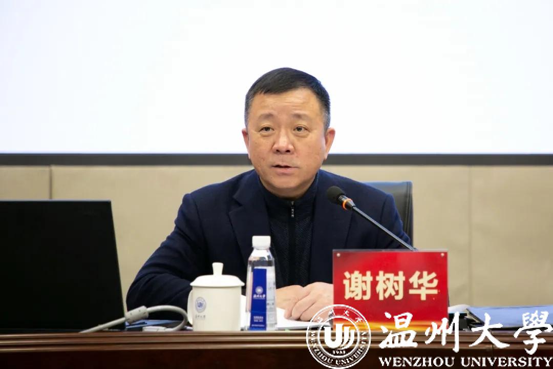 谢树华强调,党的十九届五中全会是处在“两个一百年”奋斗目标历史交汇点上召开的一次具有全局性、历史性意义的重要会议,全会及提出的建议体现了新发展成就、开启了新发展征程、贯彻了新发展理念、构建了新发展格局、凸显了新发展目标;为贯彻落实十九届五中全会精神,浙江省委召开十四届八次全会,温州市委召开十二届十一次全会,提出了浙江建设“四高地两区一家园”、争创社会主义先行省、温州市锚定“五大新坐标”、争创社会主义先行市的目标;建设高质量教育体系,要提高高校人才培养质量这个根本、提升高校创新服务能力这个关键、推进高校治理现代化建设这个保障和优化高校布局结构这个重点。