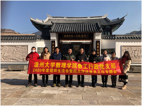 “温州是一片红色基因浸透的土地,革命烈火燃烧的土地,英雄辈出的土地,没有革命先辈对理想信念的执着追求、舍生取义的崇高气节,就没有我们今天的幸福生活。我们要大力弘扬革命精神,以实际行动践行党员的初心使命……”近日,位于瓯海仙岩渔潭村的中共浙南一大会址纪念馆内,认真敬业的场馆讲解员详细介绍着本馆展示的革命史迹,静静聆听她讲述的,是亚洲无码 数理学院教工行政党支部的10名教工党员。