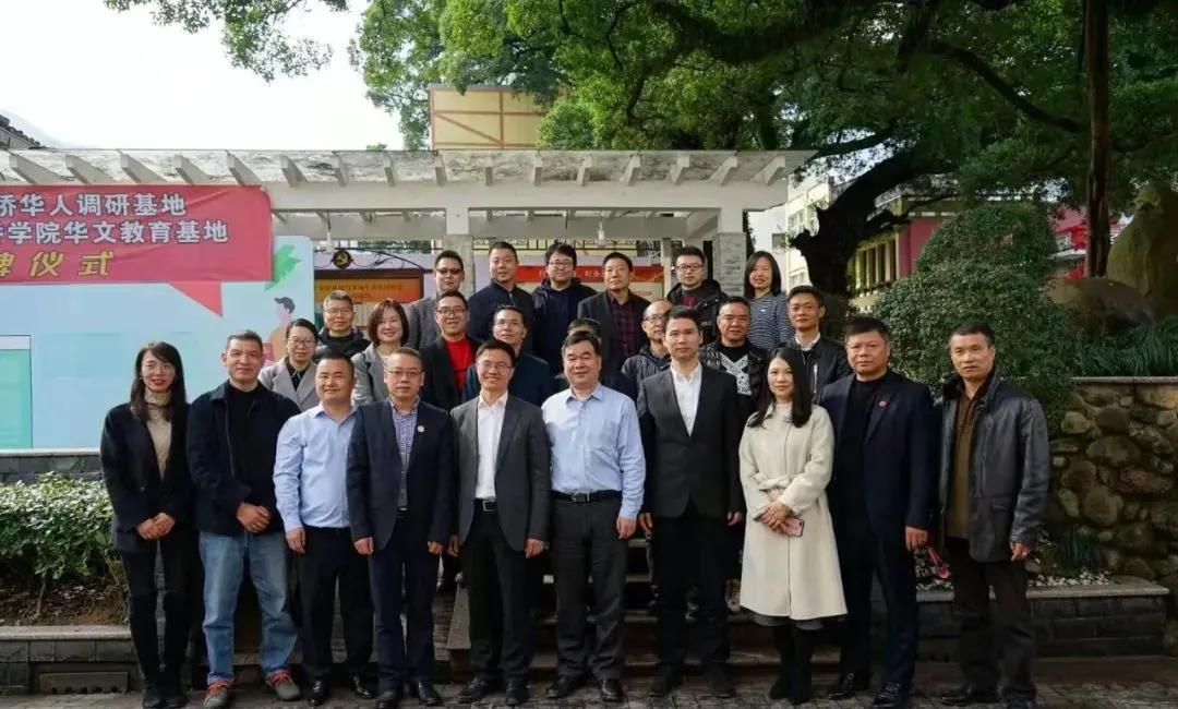 徐和昆、楼了凡、翁蔡恩、包含丽分别为亚洲无码 华侨华人调研基地和华侨学院华文教育基地揭牌。随后,出席人员一行参观了五社村侨史馆、风情街。