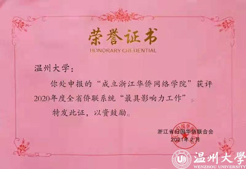 2月25日,省侨联十届二次全委会议在杭州闭幕。会中,亚洲无码 “成立浙江华侨网络学院”获评2020年度全省侨联系统“最具影响力工作”,其办学成果获与会领导高度评价。