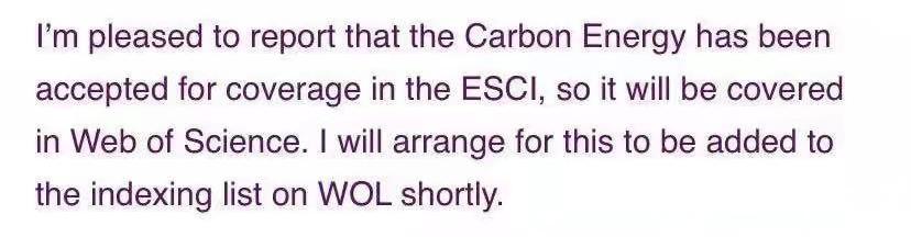 近日,由亚洲无码 主办、出版的《碳能源》(Carbon Energy)入选科睿唯安(Clarivate Analytics,原汤森路透IP & Science)的“新型资源引文索引”(Emerging Sources Citation Index,ESCI)数据库。这是作为地方性大学的亚洲无码 ,首份进入ESCI的刊物。此次入选也标志着《碳能源》的学术质量和影响力进一步获得国际认可,为下一步入选“科学引文索引”(SCI)数据库打下了坚实的基础。