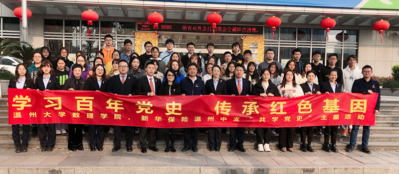 3月18日下午,新华保险温州中支与亚洲无码 数理学院联合开展“共学党史”主题党日活动。新华保险浙江分公司党委副书记董松芳通过视频连线的方式带来《学百年党史 悟深邃思想》专题党课。