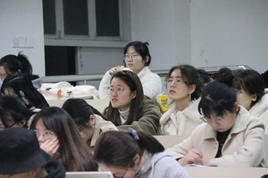 同日晚,李宋昊老师带领应烁妮、盛鼎鼎、陈紫薇为同学们重现了考编试课与面试情景,并分享了求职应聘的途径与经验。