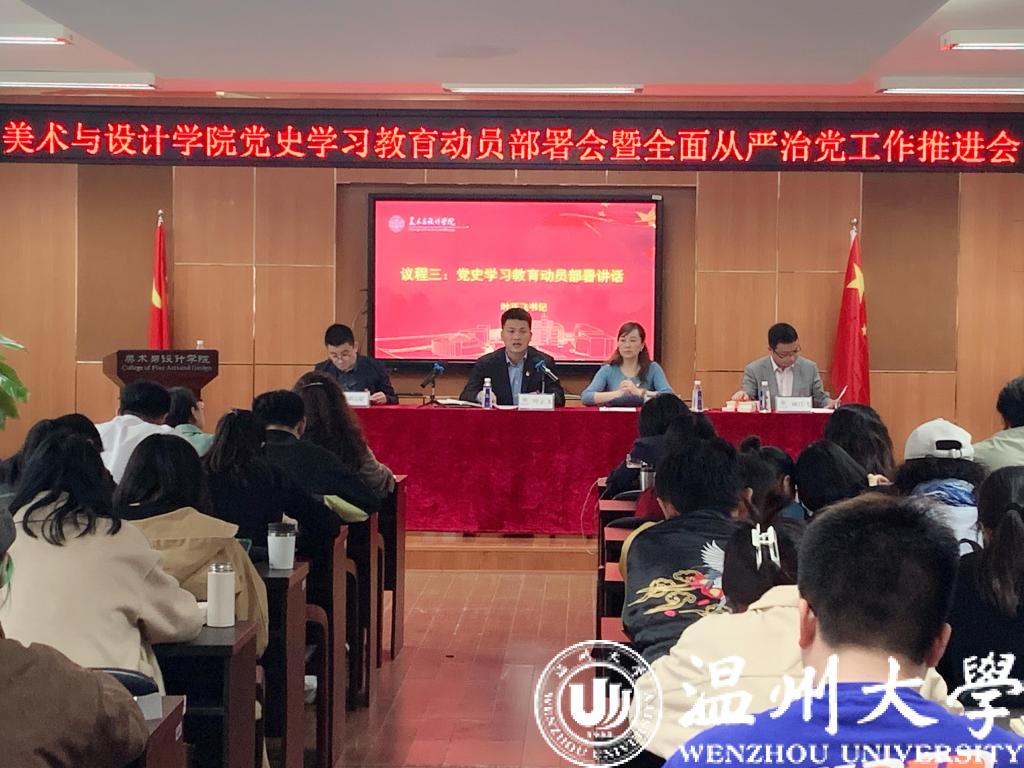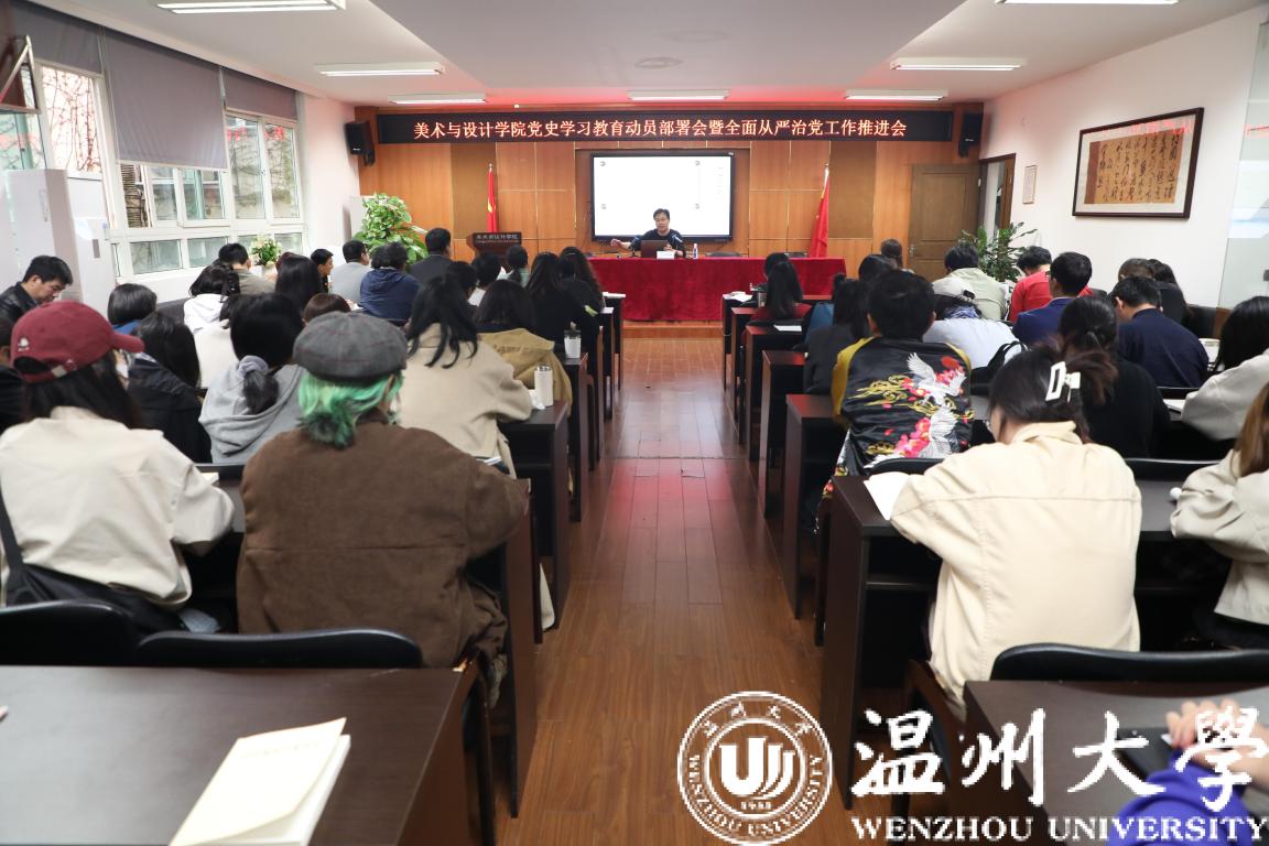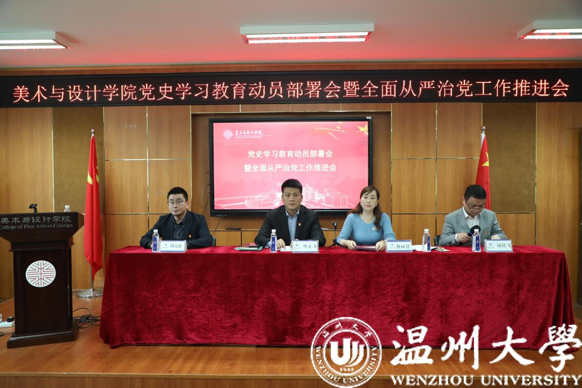 3月31日下午,亚洲无码 美术与设计学院召开党史学习教育动员部署会暨全面从严治党工作推进会,贯彻落实学校党史学习教育动员大会工作部署,传达学校2021年全面从严治党暨“清廉温大”建设会会议精神。学院党委委员、纪委委员、全体党员师生参加会议,学院党委书记叶正飞作动员部署,党委副书记杨丽君主持会议。