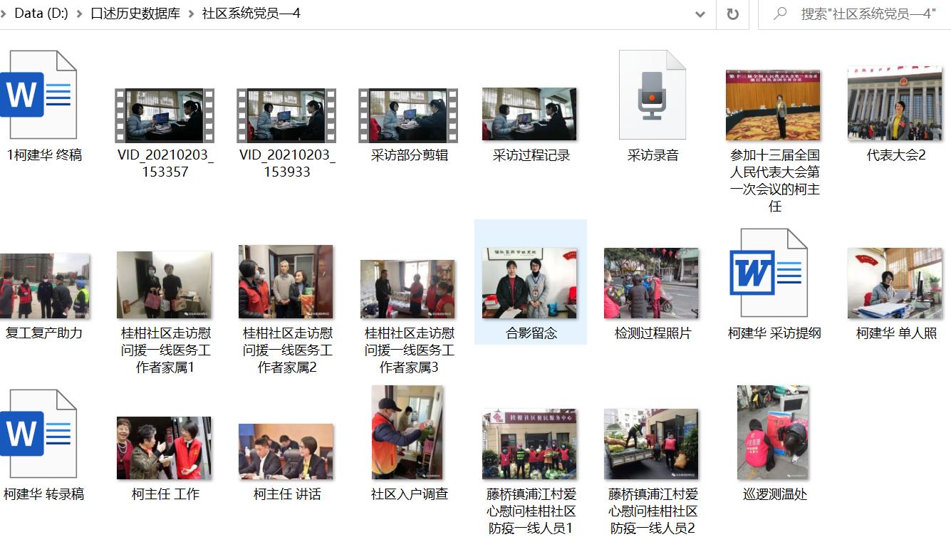 在这一背景下,温大人文学院历史系的团队成员先后在温州鹿城、瑞安、瓯海、龙湾、洞头、平阳、龙港等地开展调研,通过线下实地走访与线上腾讯会议视频访谈相结合的形式,采访了来自不同领域的28位参与疫情防控第一线的基层党员,收集音视频资料近50小时,整理受访者口述实录文字稿约40万字,形成约25万字的口述历史书稿,在此基础上建立了温州基层党员疫情防控口述历史数据库,并制作了宣传视频。