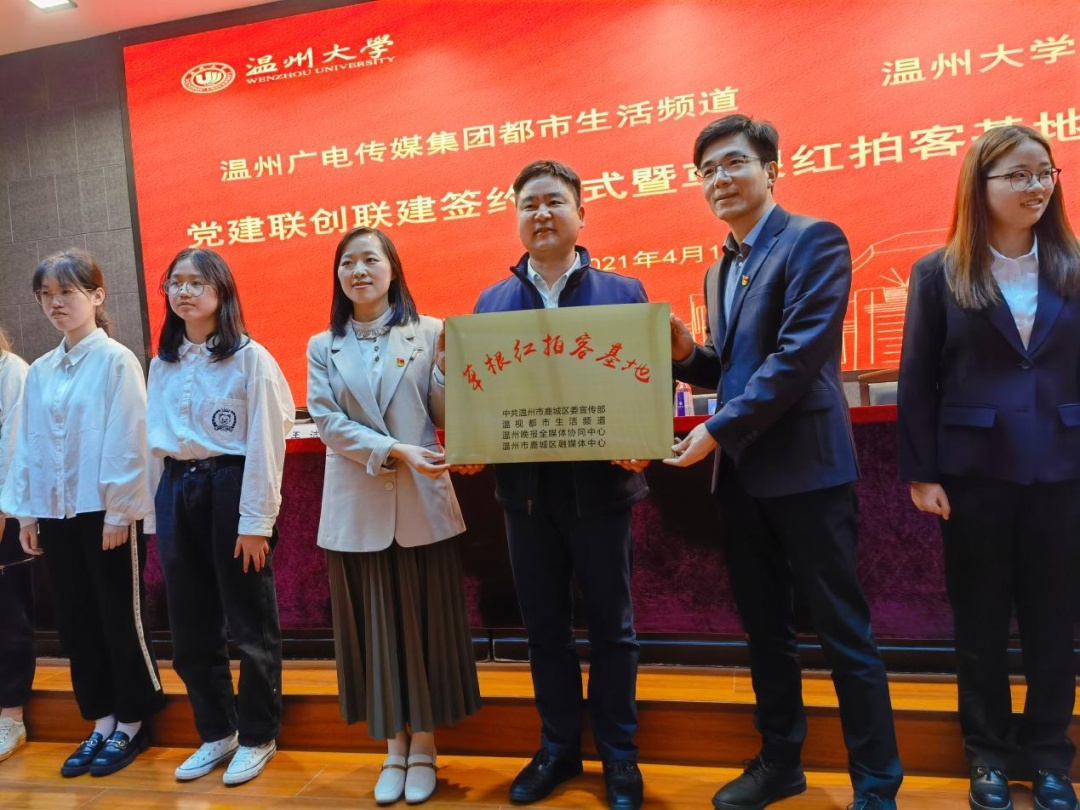 亚洲无码 数理学院与温州广电传媒集团都市生活频道两家单位在亚洲无码 岩松堂举行基层支部联盟共建签约暨草根红拍客基地授牌仪式,携手奏响“支部共建”的好声音。双方将遵循“党建引领、平台共享、活动创新、关系融洽”的原则,发挥各自优势,用手机镜头讲好当代大学生的故事,唱响“温州数学家之乡”好声音,献礼建党100周年。