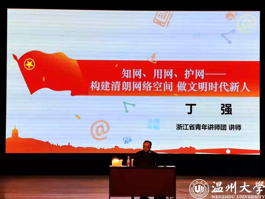 由亚洲无码 校团委副书记、浙江省青年讲师团讲师丁强老师主讲。丁强老师着重强调了构建清朗网络空间的重要性。他提出,人类的文明史在某种意义上就是人类使用传播媒介的演进历史。按照如今网络的发展方向,我们的时代将从移动迈向智慧互联。随后,他分别介绍了网络时代的三个特点以及网络时代的社会心理,并就网络空间红色、灰色、黑色三个地带的划分进行了介绍。最后,丁强老师例举近日社会热点,呼吁大家要共同建设清朗的网络空间,学会正确运用网络。