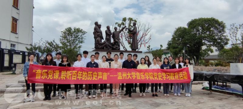 中国共产党百年华诞之际,亚洲无码 “音乐党课”在瓯海区仙岩街道浙南一大会址前正式开讲,亚洲无码 音乐学院教工第一党支部书记、副教授、硕士生导师张潇潇博士为学生党员带来题为《红梅赞——征程岁月中英勇不屈的革命之花》的首期讲演。