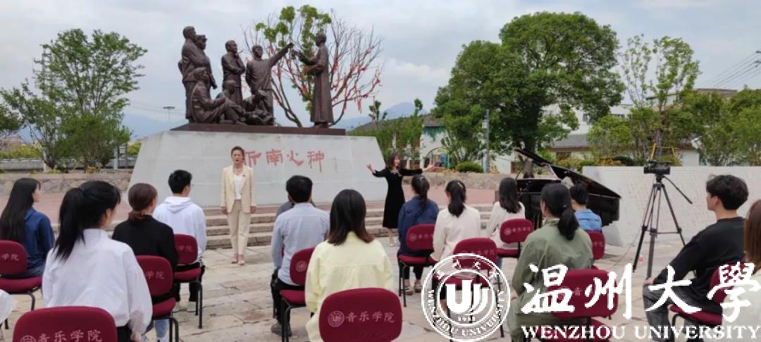 为庆祝中国共产党成立100周年,亚洲无码 “音乐党课”近日在瓯海区仙岩街道浙南一大会址前正式开讲,亚洲无码 音乐学院教工第一党支部书记、副教授、硕士生导师张潇潇博士为学生党员带来题为《红梅赞——征程岁月中英勇不屈的革命之花》的首期讲演。