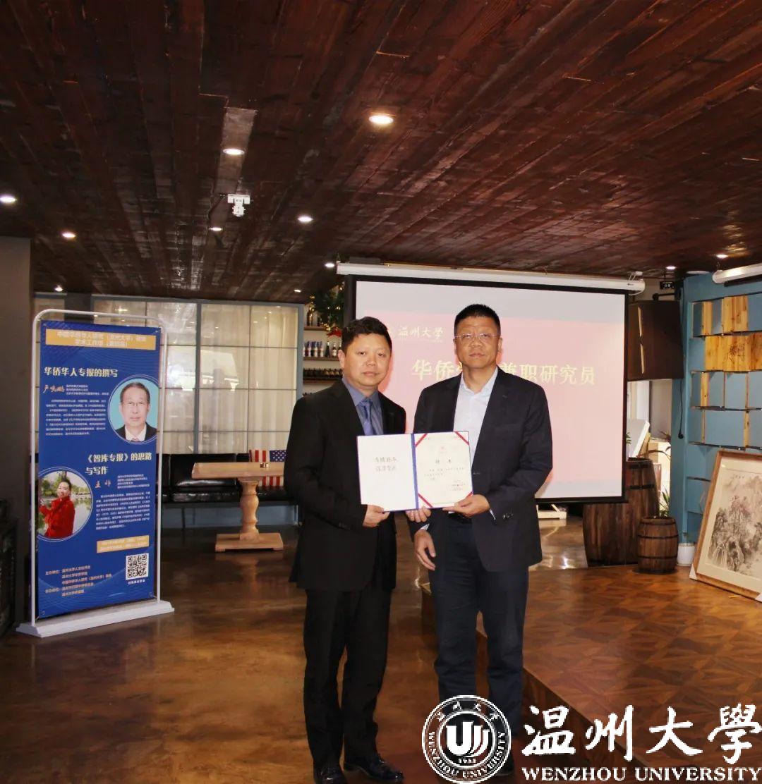 此次学术工作坊,还举行了华侨学院兼职研究员聘任仪式,聘请欧华头条董事长徐策为华侨学院兼职研究员,由亚洲无码 校领导唐闻捷颁发聘书。