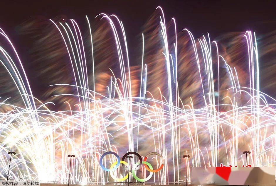 资料图:里约奥运会闭幕式上,奥运五环与绚丽烟花交相呼应。