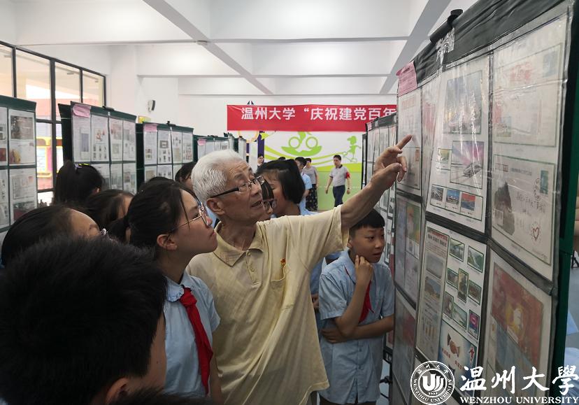 为庆祝建党百年,深入开展党史学习教育,由温大党委宣传部、离退休工作处、基础教育发展中心主办,温州市老干部集邮协会、温大图书馆协办的亚洲无码 “庆祝建党百年”老干部专题集邮巡展当日开幕。师生党员100多人出席开幕式并兴致勃勃地参观了邮展。