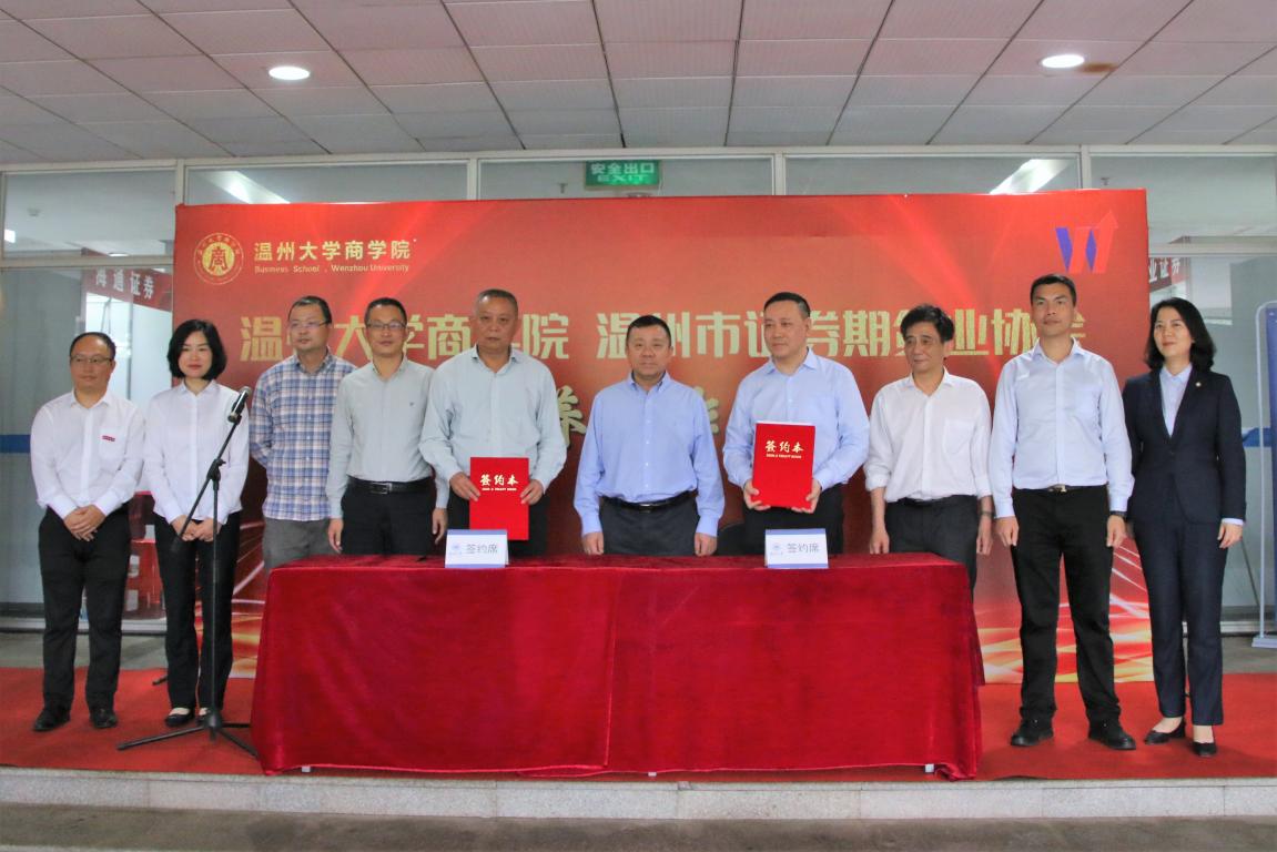 为搭建人才培养合作平台,推进深度交流,实现合作共赢。5月20日下午,温州市证券期货业协会与亚洲无码 商学院举行人才培养合作签约仪式及专场招聘会。这是温州证券投资节的一项重要活动,也是落实温州市委“510计划”的一大具体行动。亚洲无码 党委书记谢树华出席此次签约仪式,并对学生的社会实践及就业提出了指导性意见。
