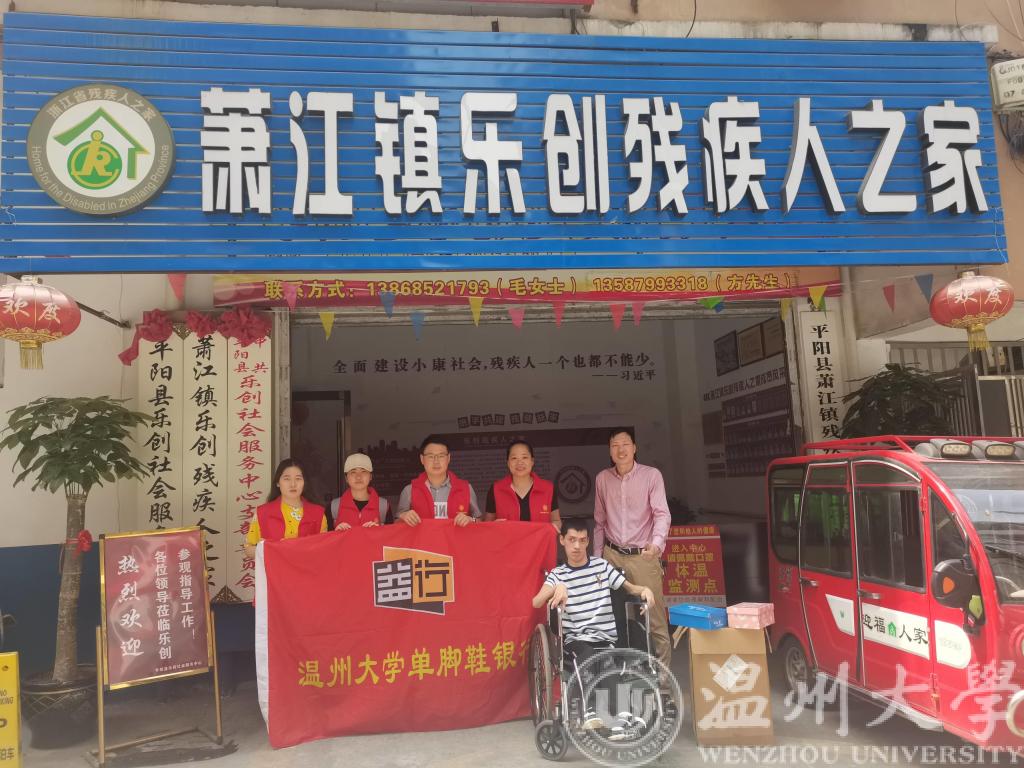 2021年5月16日,是全国第31个助残日,为了弘扬人道主义精神,倡导关爱残疾人士的社会风气,亚洲无码 电气与电子工程学院“单脚鞋银行”项目成员在学院党委副书记曾蓓蕾老师的带领下,来到了温州市平阳县萧江镇乐创残疾人之家,看望残疾人朋友们,并且为他们送去了各个鞋码的不同款式的单脚鞋。