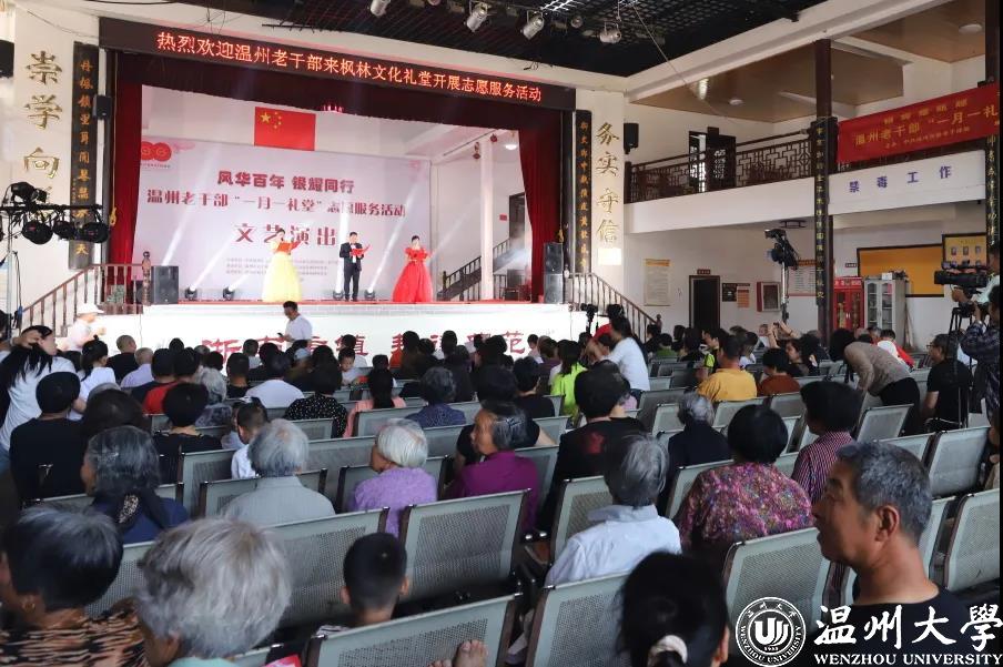 一是志愿服务进礼堂。将党史学习教育融入“一月一礼堂”志愿服务,如“风华百年 银耀同行——庆祝中国共产党成立100周年慰问演出”走进永嘉县枫林镇孤山社区文化礼堂,在乡村大舞台上唱响红色旋律。深入基层文化礼堂开展党史学习教育知识竞答,以寓教于乐的方式,把红色党史讲给更多的群众听。
