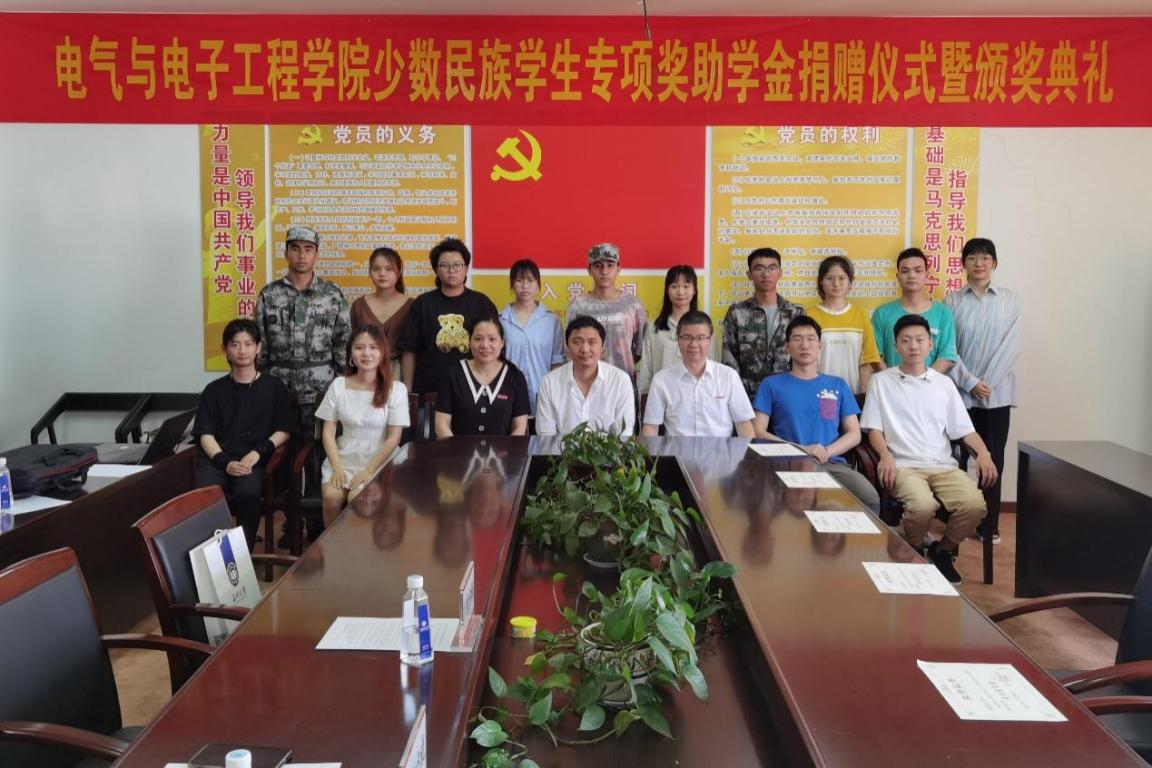 电气与电子工程学院共有46名少数民族学生,大多数来自贵州、广西和新疆等偏远地区,其中有16名是家庭经济困难学生,家庭经济困难学生占少数民族学生的 35%。为助力学子成才,鼓励先进,奖优促学,在2001级优秀校友张方晓的大力支持下,向学院捐助5万元,设立少数民族学生专项奖助学金。专项奖助学金分为专项奖学金、专项助学金及临时补助,每年将用以资助少数民族困难学生和奖励少数民族优秀学生,第一批少数民族学生专项奖助学金捐助了17500元,共有12名少数民族学生受益。