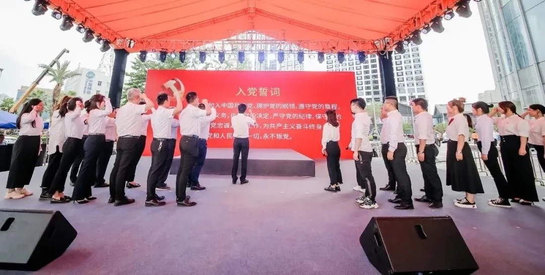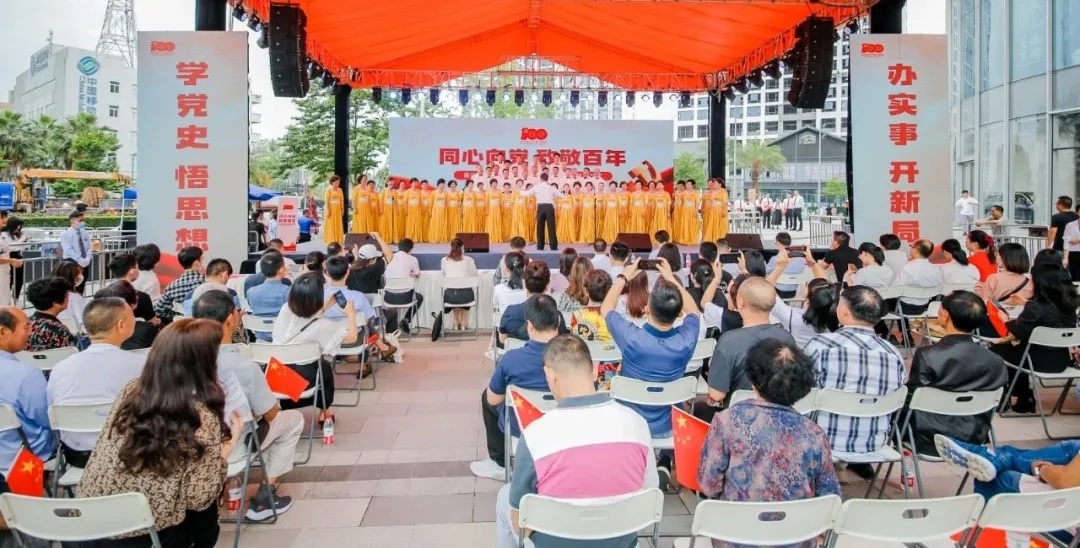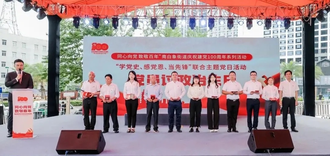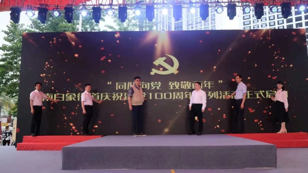 南白象街道庆祝建党100周年系列活动启动仪式,受邀领导们上台共同按键启动。