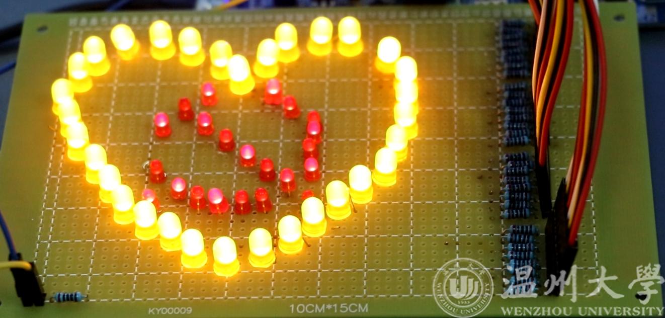 在长达7小时的比赛过程中,同学们精心准备,沉着应对,围绕着建党100周年这个大主题,在有限的时间内创造出一件件独具特色的作品,利用发光二极管拼成党徽、红船、100周年等图文,通过单片机呈现出跃动的符号,发出悦耳的音乐,让人眼前一亮,赞叹不已。电烙铁、单片机等专业工具在同学们的手中运用自如,2019级和2020级的学生们在短短一两年的时间通过专业学习完成了从不会到会的质变,有序亮起的发光二极管,严谨缜密的运行代码背后是同学们扎实的理论功底的积淀。而在实际动手过程中,为了更好地围绕“建党100周年”的主题、融合建党元素,同学们更是主动回首百年建党路,充分挖掘党史故事,在实践过程中自觉开展了一次党史学习教育。