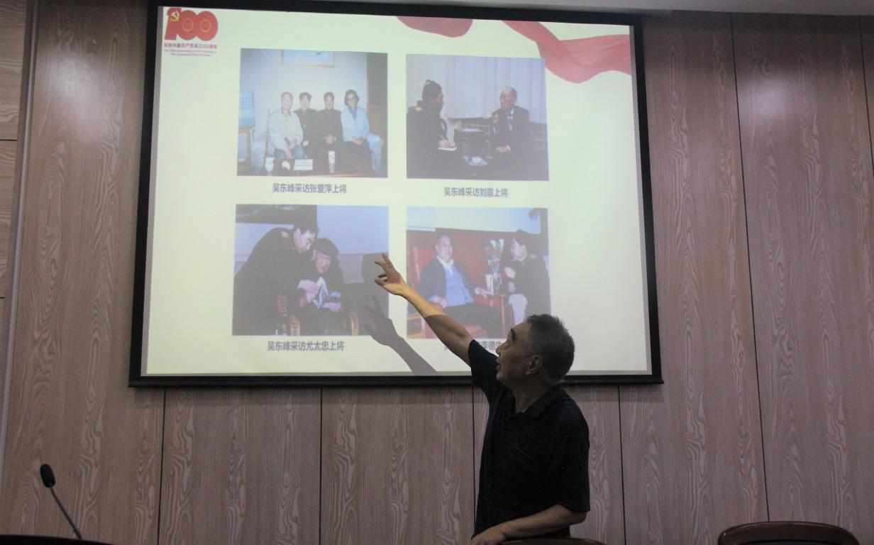 讲座上,吴东峰还以采访照片为引,讲述了自己采访张爱萍等多位开国将军时所发生的趣闻轶事。讲座末尾,吴东峰表达了对在场学生的期待和鼓励,讲座在热烈的掌声中圆满结束。“吴东峰先生创新性地从采访者的视角,以讲故事的形式生动描述了新中国的革命史和战争史,这种跳出刻板说教形式的党史教育,令人印象深刻、受益匪浅。”温大人文学院相关负责人表示,学院历来高度重视党史学习教育,希望同学们可以通过系列党史学习教育汲取革命先辈们的精神力量,传承宝贵的精神遗产,继续砥砺前行。