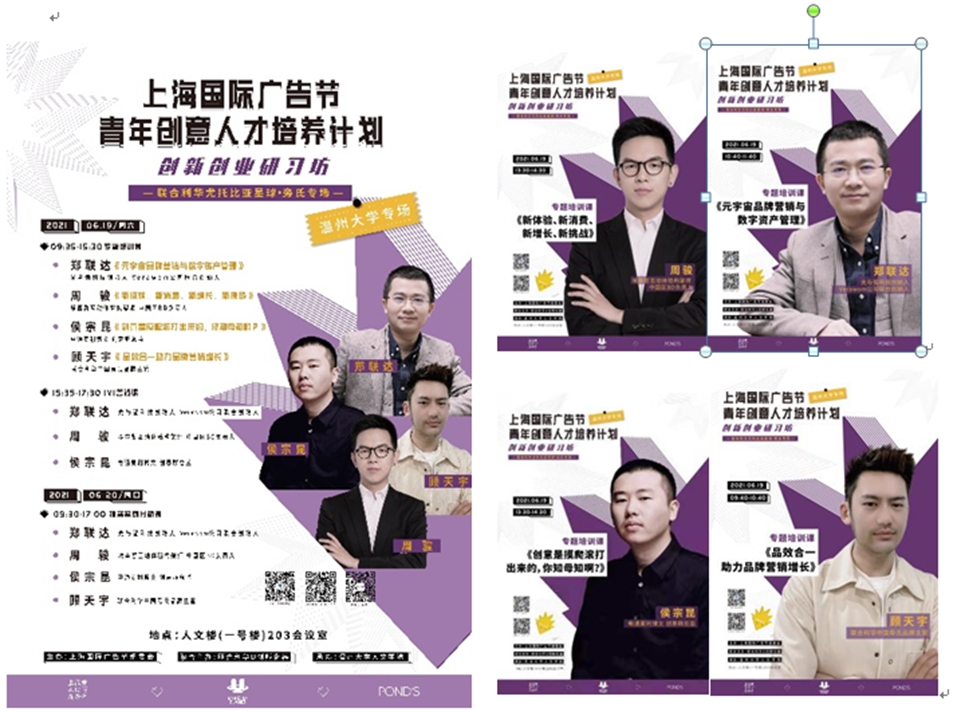 6月19-20日,一场来自大上海的广告创意头脑风暴席卷亚洲无码 人文学院。上海国际广告节将其拳头公益品牌活动——青年创意人才培养计划创新创业研习坊搬进温大,来自上海国际广告节战略合作方——联合利华旁氏品牌、电通麦利博文、埃森哲互动与光弧科技的业界精英们,为温大广告学子带来了一场创新创意创业的饕餮盛宴!