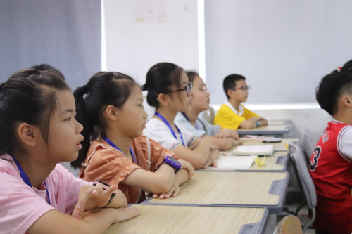 图为小朋友认真听讲有关两弹一星精神内涵的神情 青韵宣传组 摄