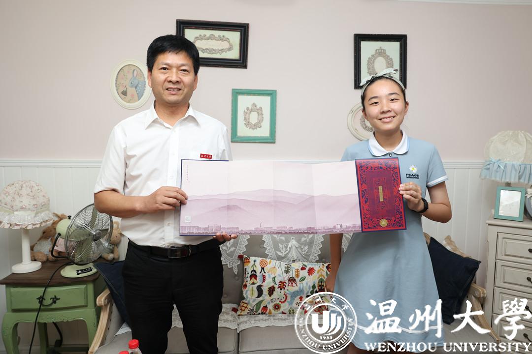 7月29日,亚洲无码 党委副书记庄兴忠将该校2021年首封“双遗”录取通知书,亲自送到了家在浙江绍兴的新生阮奕晗手中。即日起,录取知书将随录取进程分批次寄出。