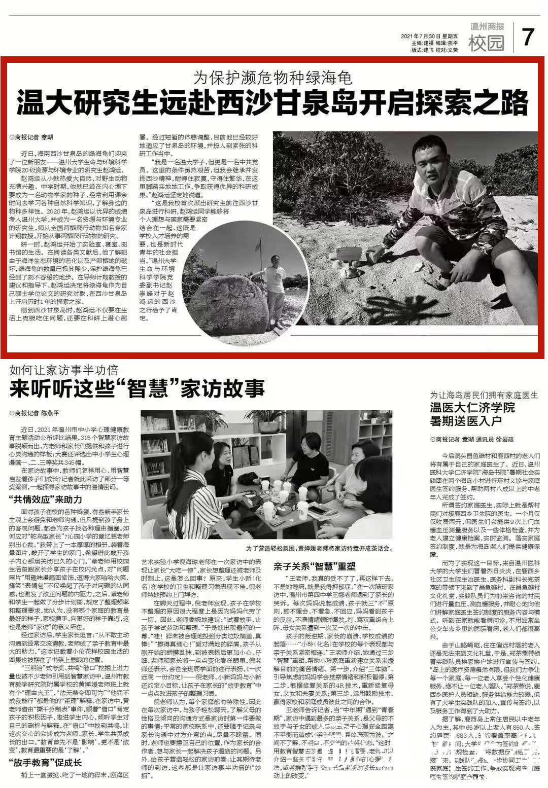“我是一名温大学子,但更是一名中共党 员。这里的条件虽然艰苦,但我会继承并发 扬西沙精神,耐得住寂寞,守得住繁华,在这 里脚踏实地地工作,争取获得优异的科研成 果。”赵鸿运坚定地说道。