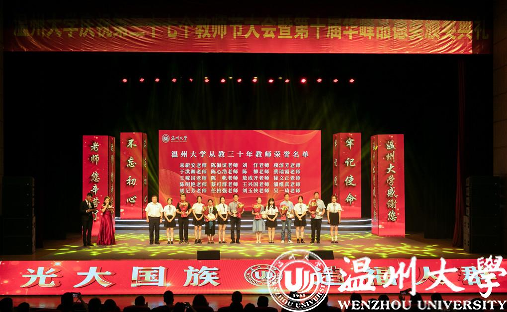 致敬榜样,感动常在。颁奖典礼上,20位从教30年教授获得表彰,10位最具代表性的道德模范个人或集体获颁2021华峰品德奖。这些楷模中,有爱岗敬业、爱生如子的楷模教师,有自强自立、品学兼优的优秀学子,有勇于担当、守卫师生健康的“抗疫”先进,有热心公益、传递关爱的志愿者团体……于无声处创造闪光价值,他们身上都有着敬业之志、笃学之风、创新之勇、大爱之心,都有着一段面对挑战锐意进取、矢志不移、坚韧向前的奋斗历程,更有着一个共同的名字——“温大人”。