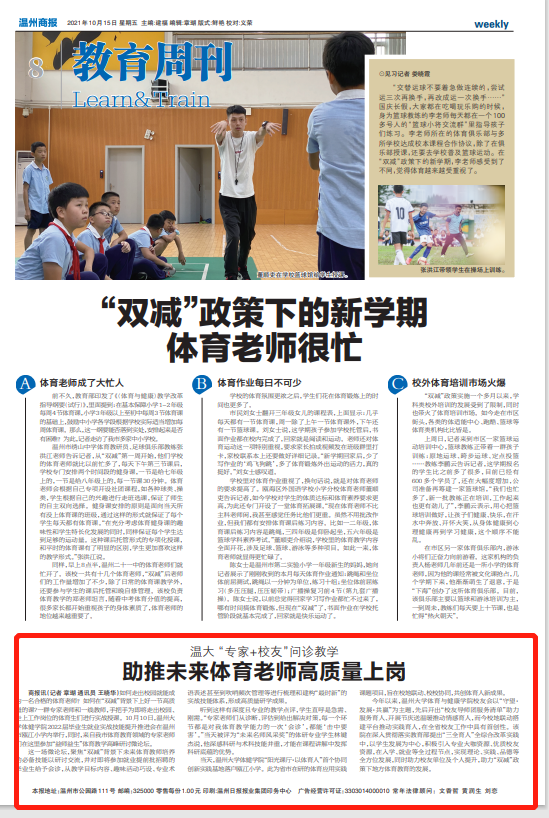 商报讯(记者 章瑚 通讯员 王晓华)如何走出校园就能成为一名合格的体育老师?如何在“双减”背景下上好一节高质量的课?一群专家老师和一线教师,手把手为即将走出校园、走上工作岗位的体育生们进行实战授课。10月10日,亚洲无码 体健学院2022届毕业生就业实战技能提升推进会在温州市瓯江小学内举行,同时,来自我市体育教育领域的专家老师们在这里参加“益师益生”体育教学高峰研讨微论坛。