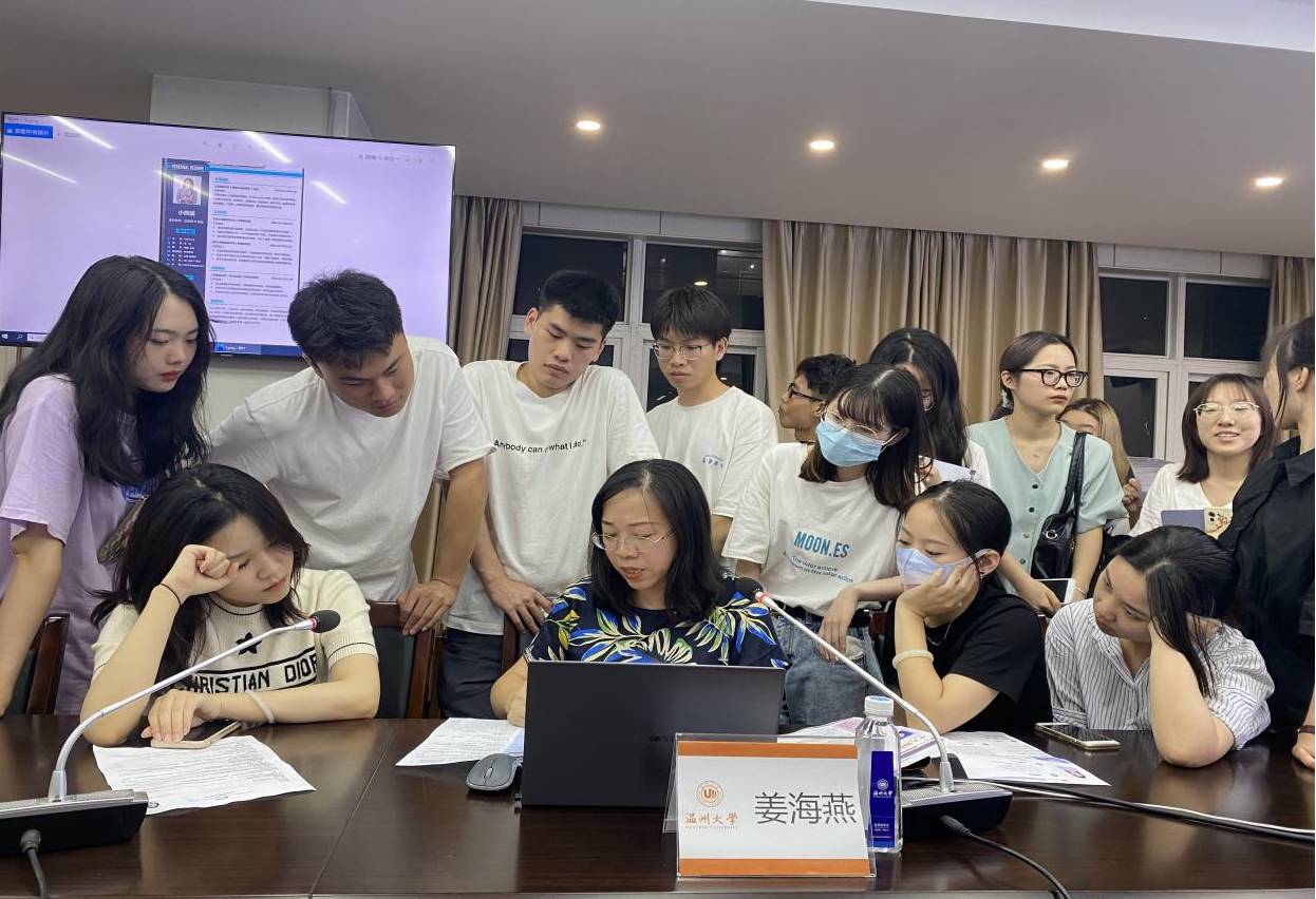 为了指导同学们更好完善个人简历,为毕业生提供更深入的一对一就业服务,使同学们的求职道路更加顺畅。10月11日晚,亚洲无码 外国语学院于外语楼212会议室开展“简历会诊”活动。学院党委书记、国家高级指导师、职业人才测评师、GCDF全球职业规划师、BCC生涯教练、UCT高校生涯导师、ACDF青少年生涯发展辅导师、二级心理咨询师姜海燕老师应邀主讲。本次活动由学工办辅导员单伟乐老师主持。