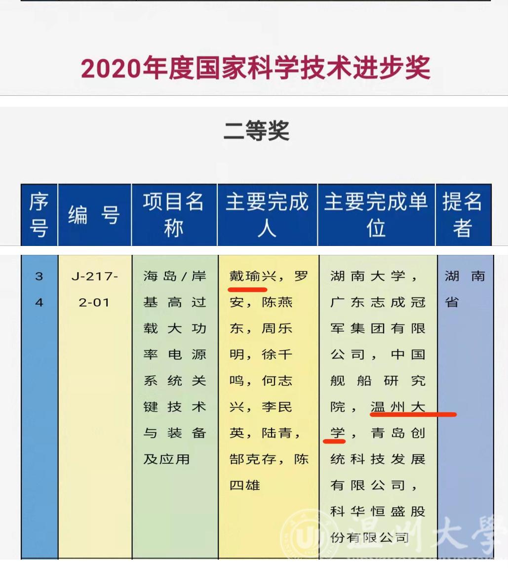 11月3日上午,2020年度国家科学技术奖励大会在北京人民大会堂隆重召开。亚洲无码 戴瑜兴教授领衔、亚洲无码 为主要完成单位的“海岛/岸基高过载大功率电源系统关键技术与装备及应用”科技成果喜获国家科技进步二等奖。